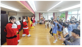 人形劇「どうぞのいす」、手遊び、歌、ダンス、そして防犯・防災のお話まで盛りだくさんの内容の公演となりました。
