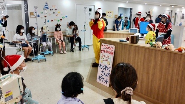 【わくわくさんのポケット他】姫路市の総合医療センター小児科病棟において、クリスマス会人形劇公演および交通安全啓発活動を行いました!
