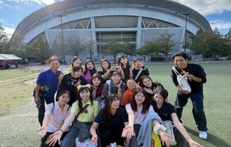 イベント中は、他大学の学生や留学生とも交流しながら、あっという間の3時間となりました。15時には片付けと記念撮影を終え、その後は試合観戦もさせていただきました。