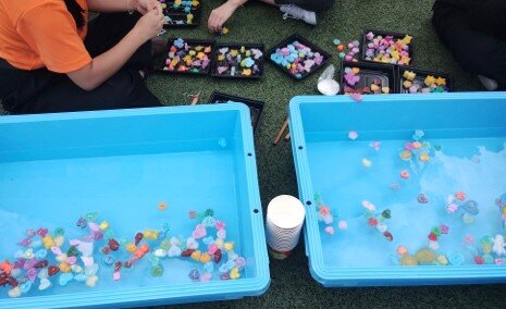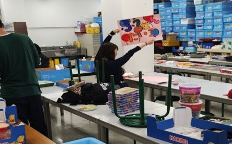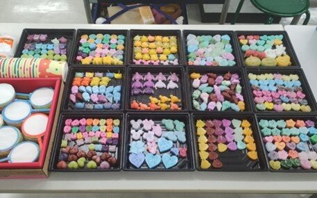 「アロマキャンドルすくい」では、事前に学生が手作りしたアロマキャンドルを使用。制作段階から香り・色・形・工程を工夫し、五感を磨きながら創造力や表現力を養いました。イベント当日は、見た目にも美しいキャンドルですくい遊びを楽しんでもらい、アロマの香りによるリラックスした雰囲気づくりにもつながりました。