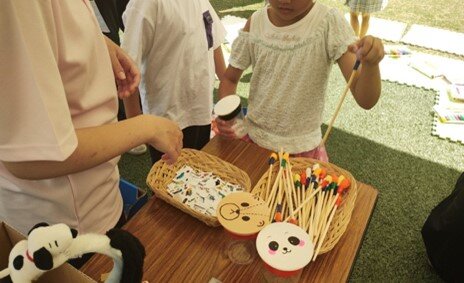 「サッカー応援!ふうせん太鼓」では、あらかじめ準備したふうせん太鼓とバチを使い、来場者が油性マーカーやシールで自由に装飾。軽くて安全で音も出るため、応援グッズとしても活用でき、身近な素材で制作する楽しさを味わいながら、世界に一つだけの応援アイテムを完成させました。