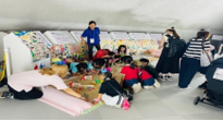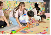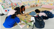 絵を描くのが苦手な参加者には「王様からの司令ゲーム」を用意し、誰でも楽しく参加できる工夫を行いました。最後はみんなで協力してテープを貼り、ひとつの大きな街を完成させました。