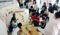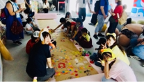 当日は26名の学生が5つのチームに分かれ、約100名の来場者と制作を通して交流しました。初めて出会った子どもたちともすぐに打ち解け、会場のあちこちで笑顔が見られました。