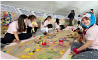 今回の企画では、次世代を担う小学生から高校生に向けて、SDGsや健康福祉、脱炭素、資源循環、自然環境について、楽しみながら学べる来場者参加型のアート制作を行いました。