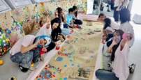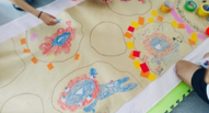 『つづきの国の街づくり』では、「こんな国があったらいいな?」を合言葉に、参加者一人ひとりが自由な発想で街を描きました。床いっぱいに広げた紙の上に道をつくり、自分の"土地"を決めて、家や人、動物、自然などを思い思いに表現。