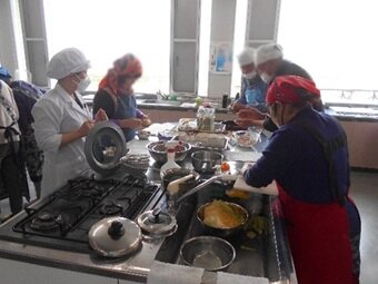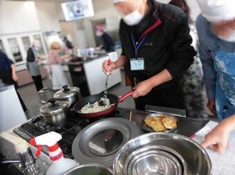 初めて使用する調理室で、調理作業に戸惑いながらも皆さん、班で協力しながら調理に取り組まれていました。