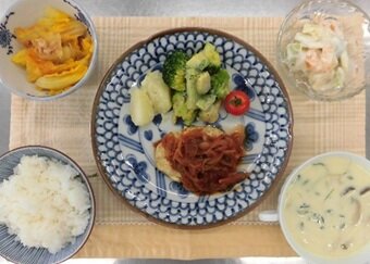 テーマは、たんぱく質を摂ろう!です。どの献立にもたんぱく質が摂取できるよう工夫しています。