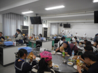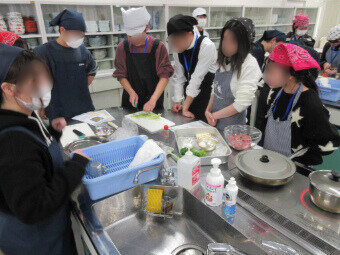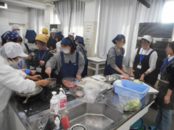 まずは担当教員によるデモンストレーションが行われ、調理のポイントや手順を確認した後、参加者全員で調理に取りかかりました。