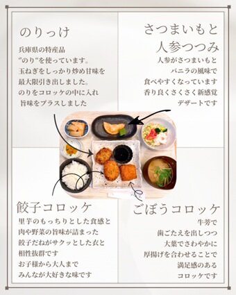 栄養マネジメント学科からのお知らせ 栄養マネジメント学科からのお知らせ 2026.02.05 【栄養マネジメント学科】授業紹介『卒業研究Ⅰ(コラボメニュー完成!)』 加古川総合文化センター内にある「レストランむすび(心結)」とのコラボで実現したメニューが 2/4より販売開始となりました~その名も「兵大4種のコロコロ定食」(ドリンクバー付き 1200円)! 兵庫大学 健康科学部 栄養マネジメント学科 学生による創作コロッケです。 食数限定メニューですので、お早めにご賞味下さい。