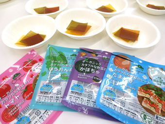 試食をした参加者の方に何の野菜かを聞いてみると、「トマトかな!?」「にんじんかな!?」「これは、たまねぎ!」と元気に答えてくださいました^^