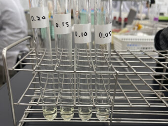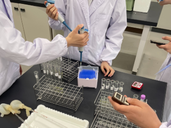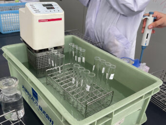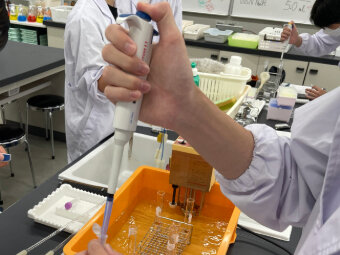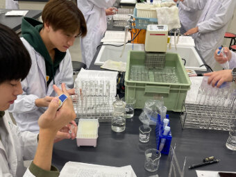 2年生科目「生化学実験II」では、酵素活性の測定や、生体組織に含まれる特定の成分を分離・分析する実験を行っています。