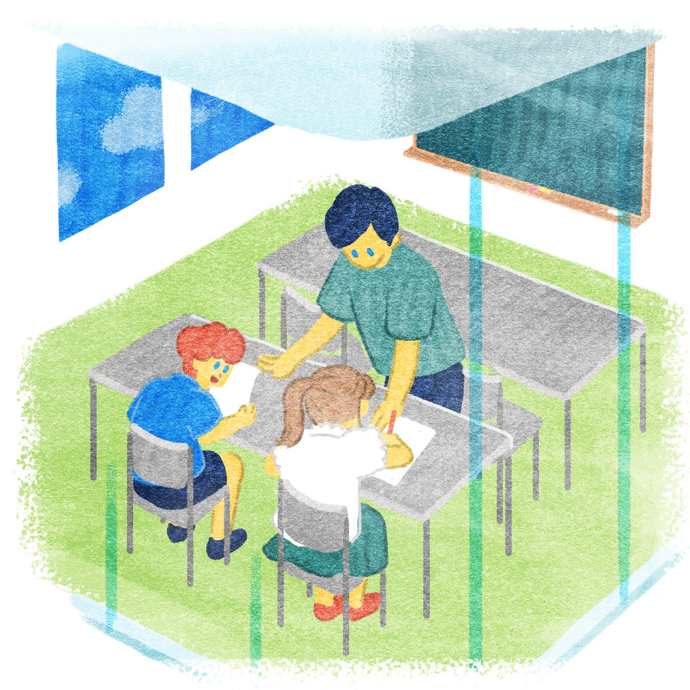 学内外問わず教員現場を体験できる、課外ボランティア活動。実際に幼稚園・小中学校で、授業や行事の指導補助などさまざまな経験ができます。