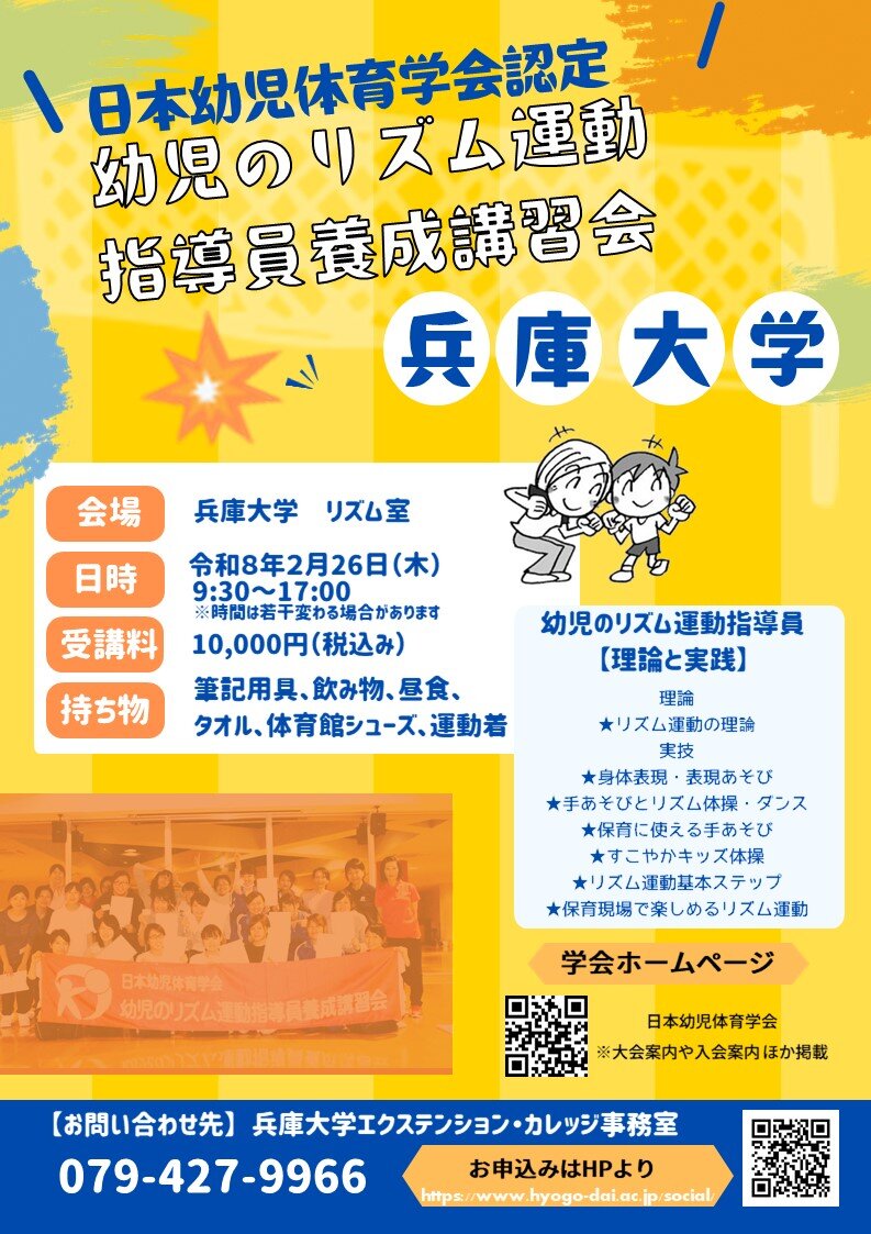 兵庫大学・兵庫大学短期大学部では「幼児のリズム運動指導員養成講習会」の募集を開始いたします